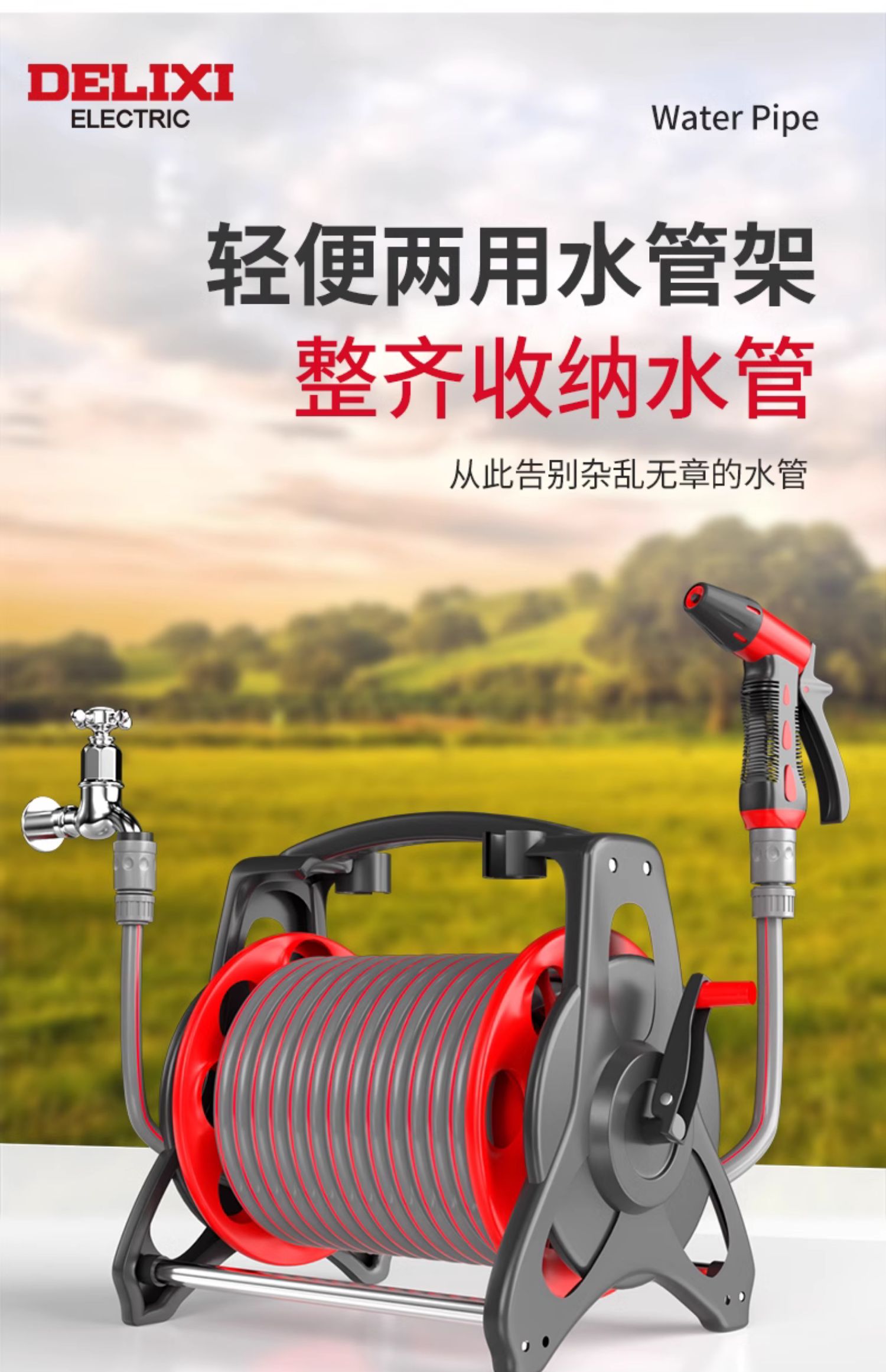德力西水管软管浇水浇花专用洗车高压水枪家用水管车收纳架收卷器